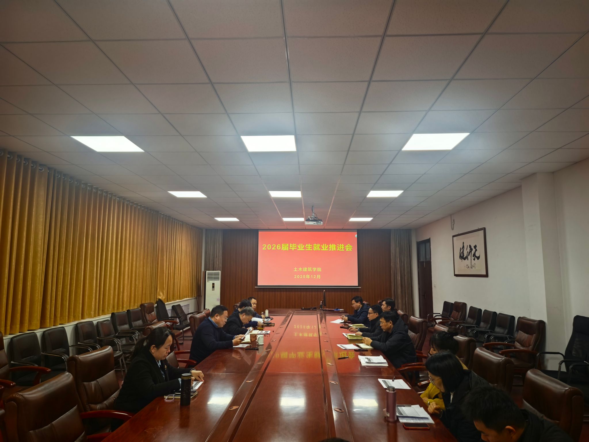为深入推进2026届毕业生就业工作,总结前期成效、部署后续任务,土木建筑学院于2025年12月1日在工科3号楼召开2026届毕业生就业工作推进会。学院院长马建军、党委书记刘丰军、各专业系主任及毕业班辅导员出席会议。