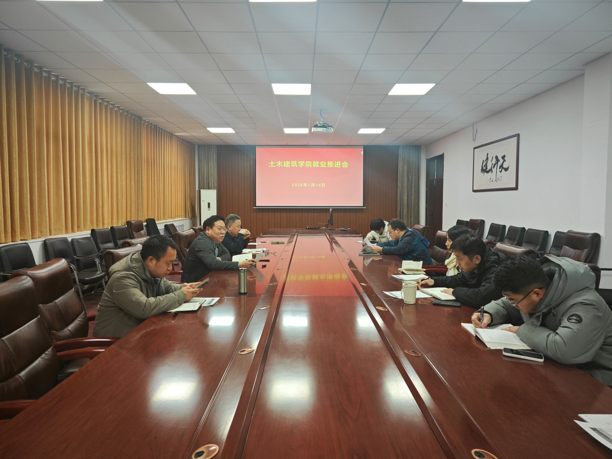 为全面复盘2025年就业工作成效,精准部署2026届毕业生就业工作,1月14日下午,土木建筑学院召开2026年度就业工作推进会。学院党委书记刘丰军、院长马建军、各专业系主任和毕业班辅导员出席会议,会议由学院党委副书记陈洁主持。
