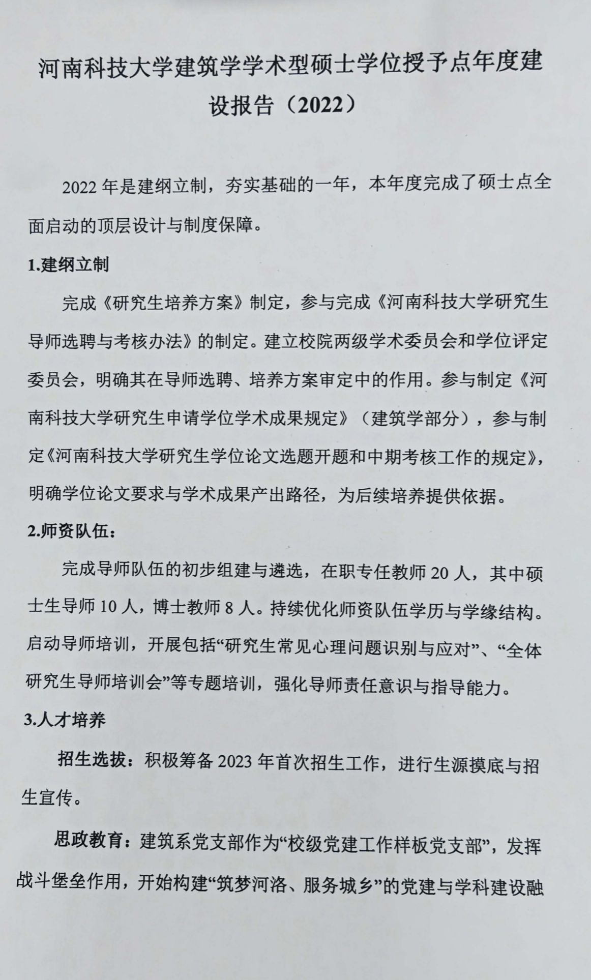 河南科技大学建筑学学术型硕士学位授予点年度建设报告(2022年)