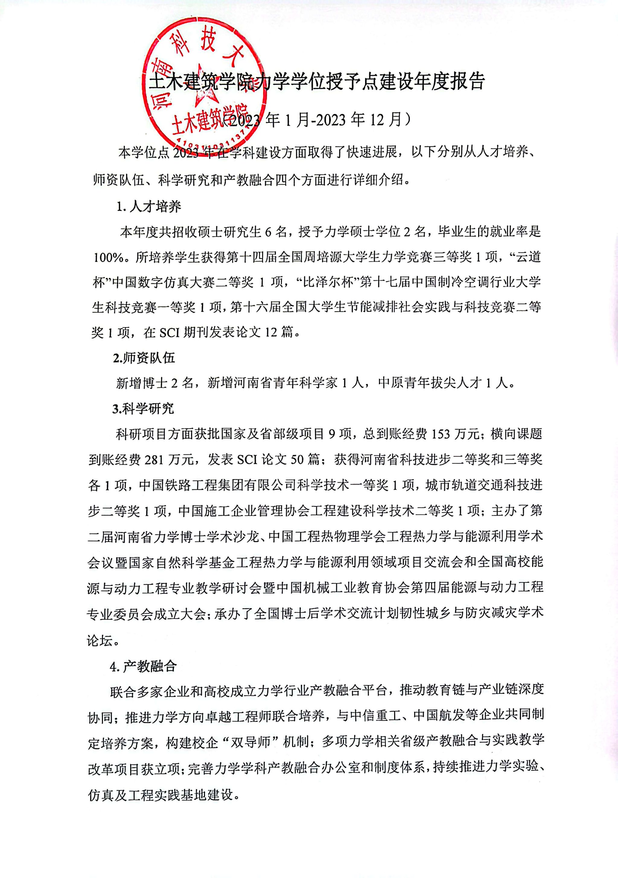 河南科技大学土木建筑学院力学学位授予点建设年度报告(2023年)